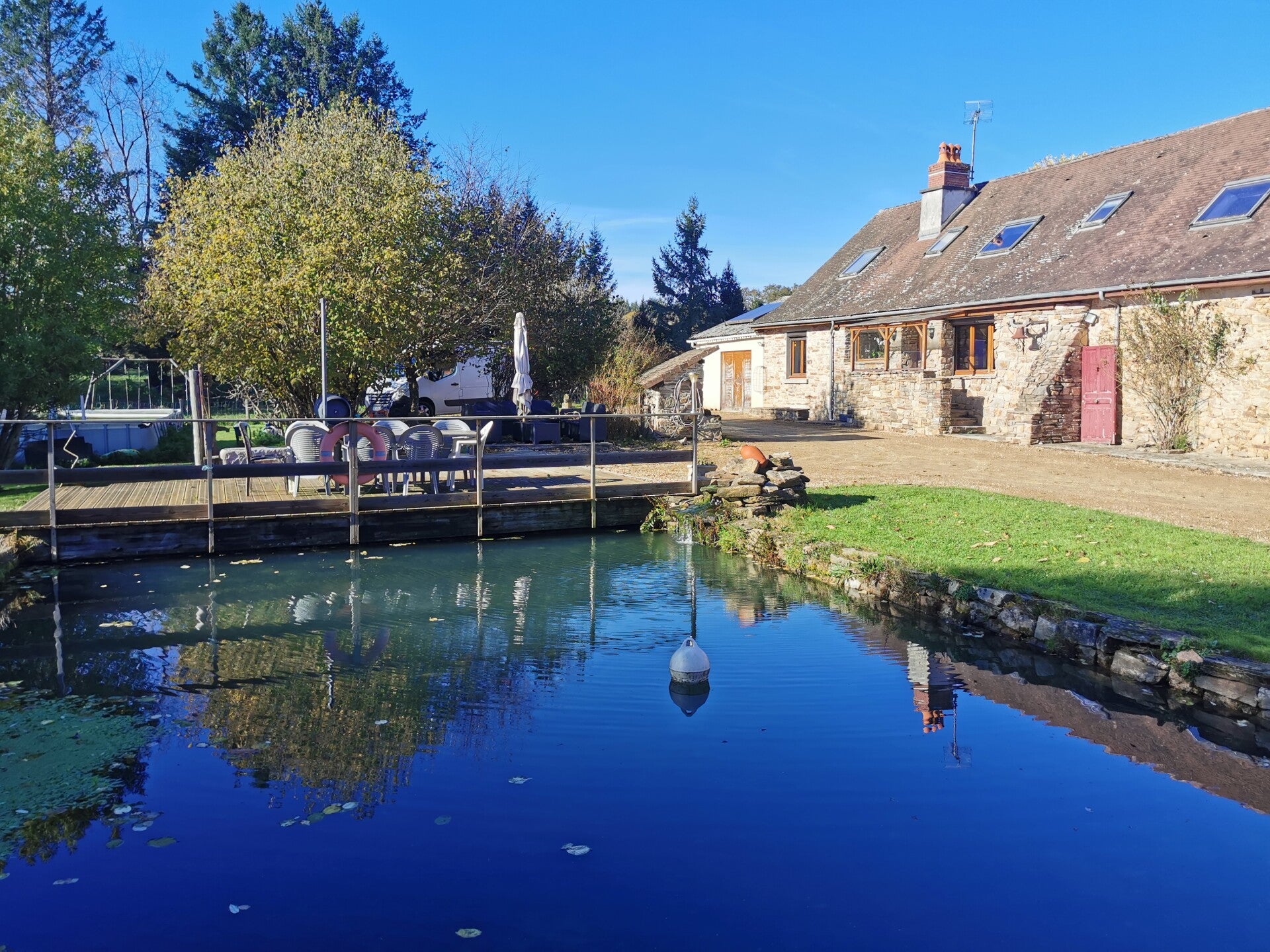 À l’extérieur, vous profiterez d’une terrasse privative avec barbecue à charbon de bois et, juste à côté, d’un bassin à poissons alimenté par une source.